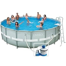 Intex 28332 Ultra Rondo II Frame Pool Set, Sandfilteranlage 6.056l/h, Leiter, Abdeckplane, Bodenschutzplane, 549 x 132 cm