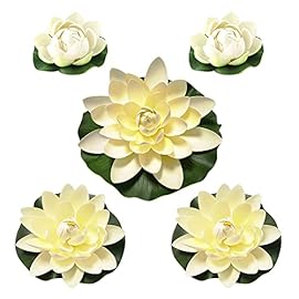 Zasvec Schwimmende Blumen 5 Stück Künstliche Seerosen Schwimmend Seerose Klein Seerose Lotusblüte Simulation Schwimm Teich Lotus Künstliche Blumen für Garten Pool Teich, 10/17/28cm, Weiß