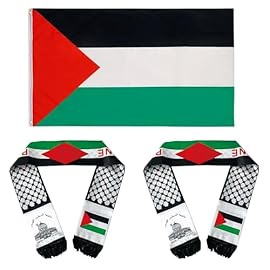 2 Stück Palästina-Flaggen-Schal Palästinensischer KEFFIYEH Jerusalem und 1 Stück 90 cm x 150 cm Palästinaflagge Palästina Flagge Große Fahnen, Freies Palästina, Rettet Gaza AQSA Islamisches Geschenk