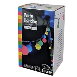 Party Lichterkette bunt 20m mit 80 LED Kugel Strombetrieben RGB IP44 für Balkon, Terrasse, Biergarten oder Party-Keller (80LED)