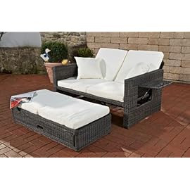 CLP Polyrattan 2er Loungesofa Ancona I Flachrattan Garten-Sofa Mit Ausziehbarem Fußteil Und Verstellbarer Rückenlehne