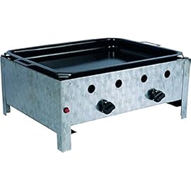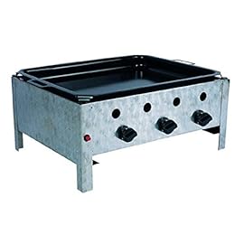 Gastrobräter aus Edelstahl 3 flammig mit emaillierter Pfanne und abnehmbaren Füssen und Piezozündung und Zündsicherung