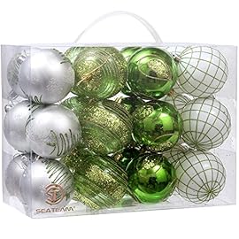 Bruchsichere Weihnachtskugeln von Sea Team, 70 mm, filigran bemalt, mit Pailletten, dekorativer Hängeschmuck für den Weihnachtsbaum, 24 Stück