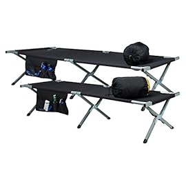 Relaxdays Feldbett, nachstellbar, ausklappbar, Aluminium, Seitentasche, Camping, schwarz-silber