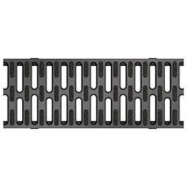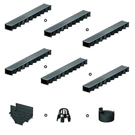 6m Entwässerungsrinne Belastungsklasse B125, 98mm komplett SET Stegrost Kunststoff (schwarz)