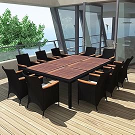 Tidyard Gartengruppe Garten Essgruppe Poly Rattan für 10 Personen, Gartenmöbel Set Sitzgruppe, mit Auflagen, Wetterfest, Tischplatte Schwarz 200x150x74 cm