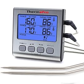 ThermoPro TP17 Digitales Grill-Thermometer Bratenthermometer Fleischthermometer Küchenthermometer, zwei Edelstahlsonden, Blaue Hinterbeleuchtung, Temperaturbereich bis 300°C