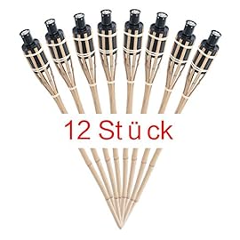 Timtina 12 x Gartenfackel Bambus Bambusfackel Garten Fackel mit Sturmverschluss Dochtschutz Gartenfackeln 90cm (12 Stück, Natur)