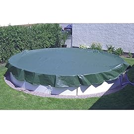 Winter- Sommer Abdeckplane für Pools bis Ø 4,00 – 4,20 m – Oberseite grün / Unterseite schwarz – Pool Abdeckplane Winter – mit Stahlseil und Spannschloss – Poolcover – Poolplane für Schwimmbecken