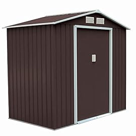 XL Metall Gerätehaus 213x127x185cm Geräteschuppen Garten Schuppen Gartenhaus (Braun)