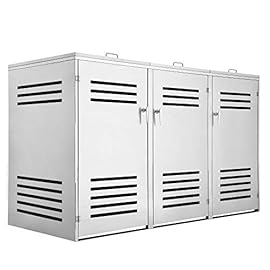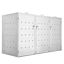 Zelsius Edelstahl Mülltonnenbox Lines für 3 Mülltonnen je 120 und/oder 240 Liter, Mülltonnenverkleidung mit 3 Klappdeckel, Metall Müllbox, abschließbar