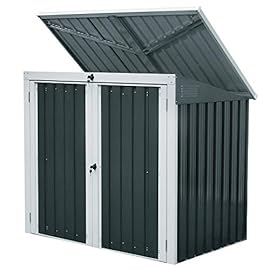 Zelsius Gartenschrank 158 x 101 x 134 cm | Anthrazit Geräteschrank mit Lüftungsgittern | Gartenhaus | Geräteschuppen für Garten | Mülltonnenbox für 2 Tonnen | Metall Aufbewahrungsbox