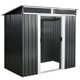 Zelsius Geräteschuppen mit Schiebetür (B) 238 x (T) 132 x (H) 180 cm | Anthrazit | Geräumiges Gartengerätehaus mit Fundament | Metall Gerätehaus mit Pultdach | Geräteschrank für Garten