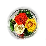 Drei echte, konservierten Rosen in den Farben, gelb, champagne und orange