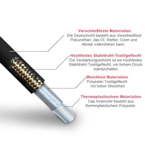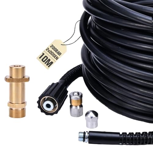 1 Stück,Länge 10m,Zulässiger Betriebsdruck bis zu 200 bar,Temperatur bis zu 60°C,Einlass M22 IG,Auslass 1/4″ AG,0.4 mm Düsenbohrung.