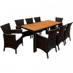 Dieses ohne Polyrattan-Set besteht jeglicher 1 Tisch, 8 Stühlen qua 8 abnehmbaren Kissen (gekettelt).
