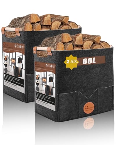 GROSSES FASSUNGSVERMÖGEN: Dieser hochwertig verarbeitete Kaminholzkorb ist groß genug, um 60 Liter sogar mehr Kaminholz aufnehmen zu können. Durch den extra dicken Filz mit feinen Nähten wird die Tragfähigkeit des Brennholzkorbes deutlich erhöht und eine maximale Stabilität beim Transport erreicht.