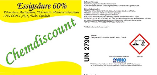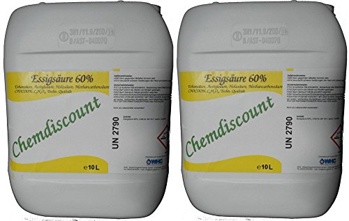 20Liter (2 Kanister á 10 Liter) hochwertige Ethansäure 60% in techn. Aufgabe. Anwendungs- darüber hinaus Sicherheitshinweise hinaus dem Label (s.Abdruck.) verbannen!