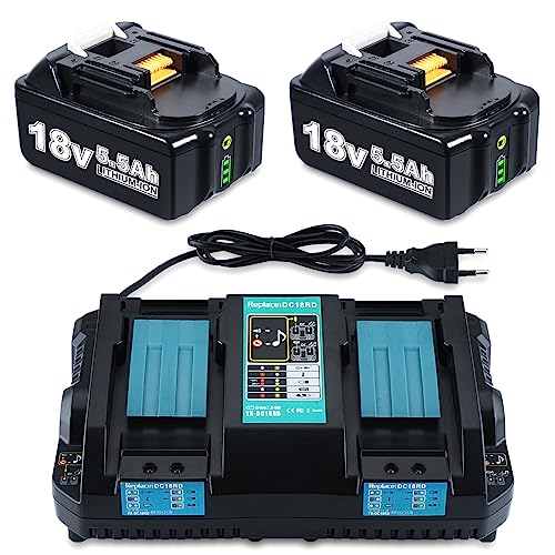 ✅Batterietyp: Lithium-Ionen | Spannung: 18V | Kapazität: 5,5Ah | Leistung: 99Wh | Kompatibel mit Makita Akku 18V BL1860B BL1850B BL1840B BL1830B BL1815N; Geeignet für alle Makita 18V und 36V (2x 18V) kabellosen Werkzeuge.