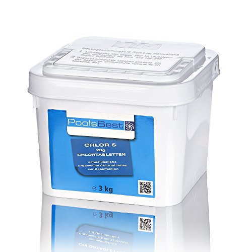 Poolsbest® Chlor S 20g Tabs sind schnelllösliche Chlortabletten, die alsbald gegen Bakterien, Pilze und Vieren sich abrackern und organische Trübstoffe und Verunreinigungen im Schwimmbadwasser gewinnen.