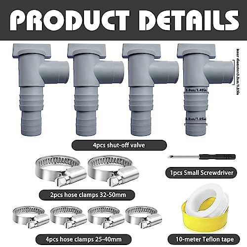 ✅【Packungsinhalt】Dies absperrhahn an Stelle pool 32mm Satz enthält 4 absperrhahn pool 32mm, 4 nicht rostender Stahl Schlauchschellen 25-40 mm,2 nicht rostender Stahl Schlauchschellen 32-50mm,1 gewindedichtband,1 Schraubenzieher, passt zu gängigen Pools anhand 32mm/38mm Schlauchanschlüssen.