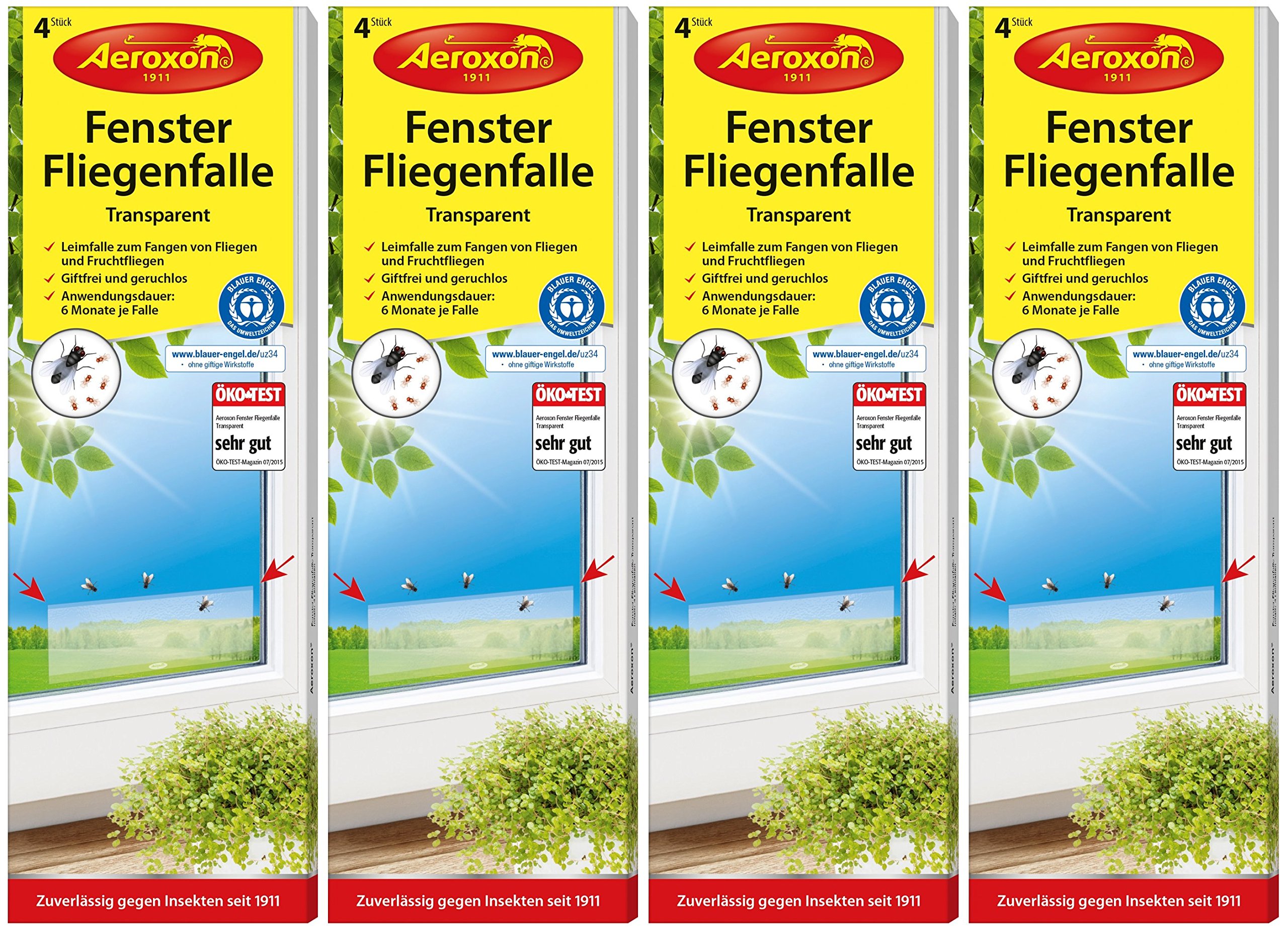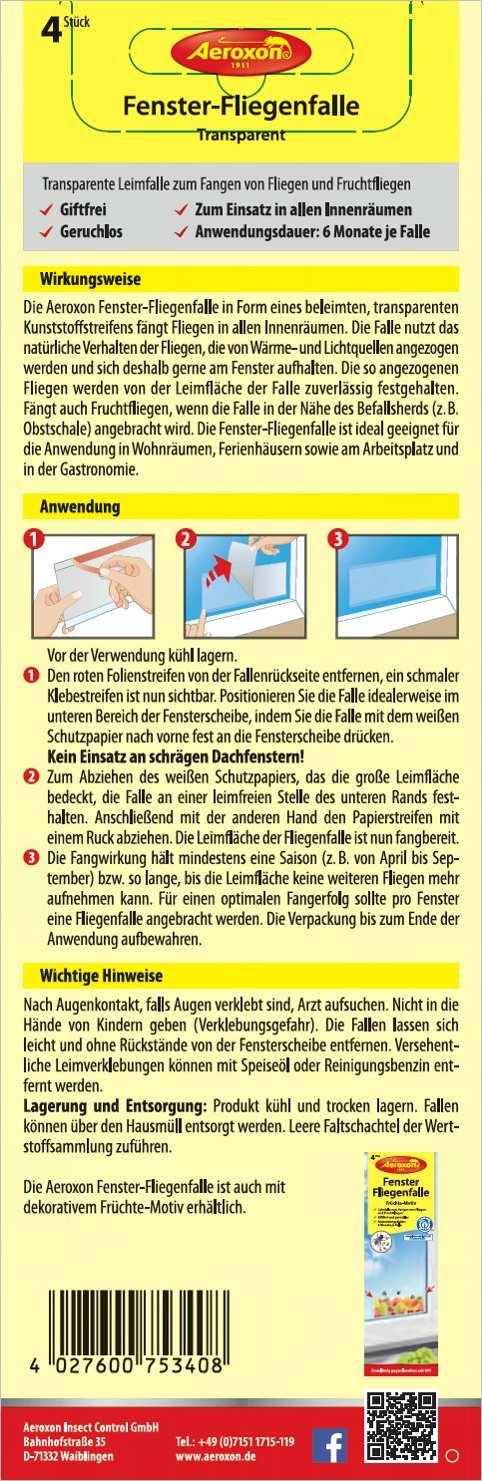 Die Aeroxon Fensterfliegenfalle in Mandat eines beleimten, transparenten Kunststoffstreifens fängt Fliegerei in allen Innenräumen.