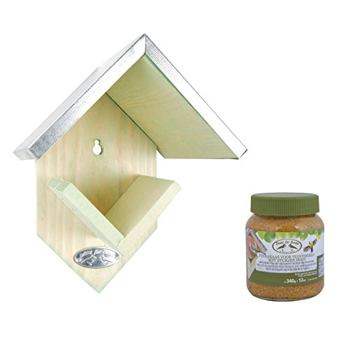 Futterhaus aus Kiefernholz mit Zinkdach und 1 Glas Erdnussbutter mit 340 g Inhalt