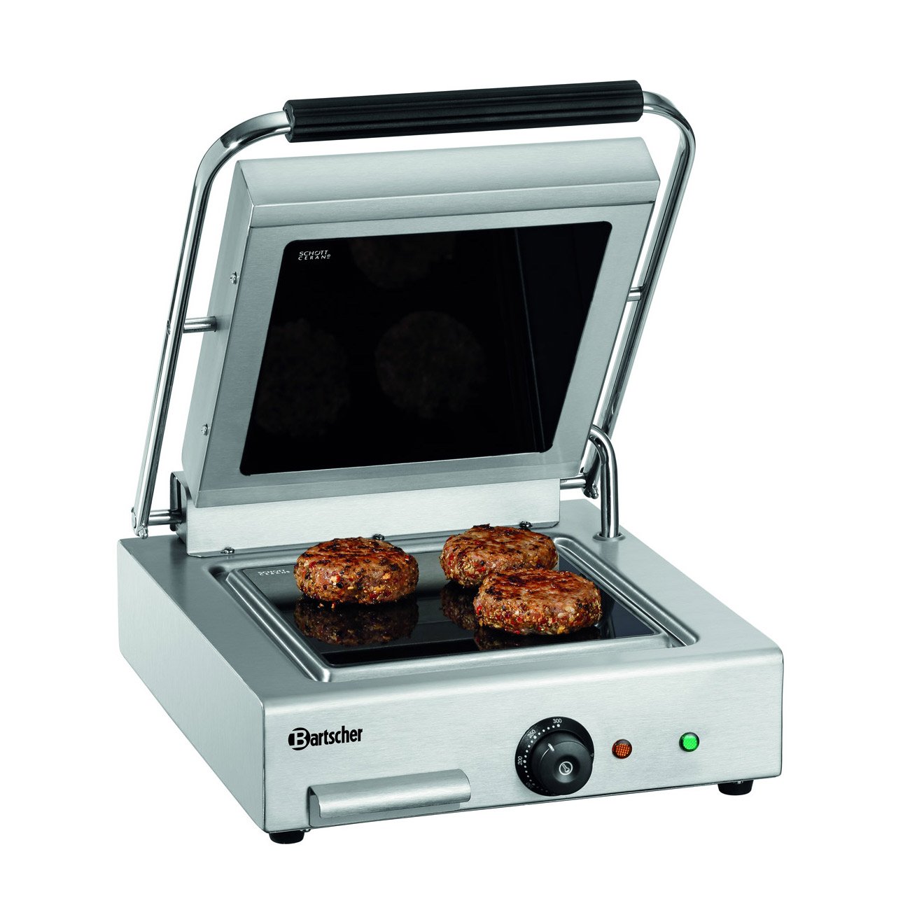 Contact-grill CS1600. Smaaks- en geurneutraal trüben, een korte opwarmtijd en eenvoudige reiniging – overtuigende argumenten voor de contact grill met grillplaten van Schott Ceran. Eigenschappen Contact-grill: – CNS 18/10 , – Grillplaten van Schott Ceran, glad, B 250 x D 250 mm, – Regelbare thermostaat: 50 °Kohlenstoff unbelebt 300 °Kohlenstoff, – Voorverwarmings controle lampje, – Controle lampje in/buiten bedrijf , – Vetopvangschaal , – Vermogen: 1,6 kW / 230 Vanadium 50 Hz , – Afmetingen: B 385 x D 495 x H 180/570 mm, – Merk: Bartscher