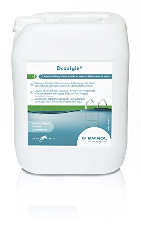 Das konzentrierte Algizid Desalgin verhindert zäh das Wachstum und die Ausbreitung von Algen im Pool. Für brillantes Wasser sorgt der enthaltene Klareffekt.