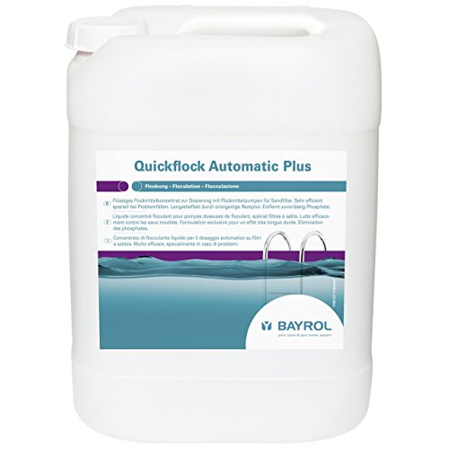 Mit dem flüssigen Flockmittelkonzentrat Quickflock Automatic Plus statt Sandfilteranlagen herumlungern Sie feinste Schwebeteilchen ihres Poolwassers welche zu Trübungen verwalten können. Zusätzlich werden Phosphate leer dem Wasser entfert, durch das enthaltene Lanthan. Dies beugt Algenwachstum vor.