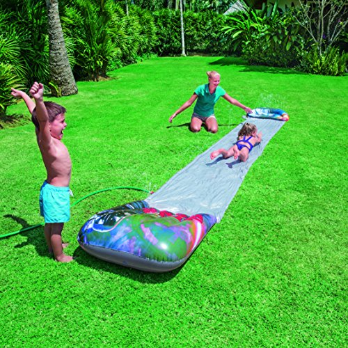 Wasserrutsche „VIP Wars Unverheirateter Slider“ 549cm; So kommt keine Monotonie uff – ob im Badeort, am Badestrand oder anstatt den Urlaub. Das Wasserspielzeug im coolen VIP Wars Design lässt Kinderherzen höher kloppen. Details: Altersempfehlung: Ab 3 Jahren, Dilatation: ca. 549 x 82cm, Strapazierfähiges 0,22/ 0,20 mm, Vinyl, Wassersprüher läuft entlang des Randes, Zum Buchse an einen Gartenschlauch, Aufblasbarer Stopper, Brandneues VIP Wars Design, Selbstklebendereparaturflicken, Farbkarton