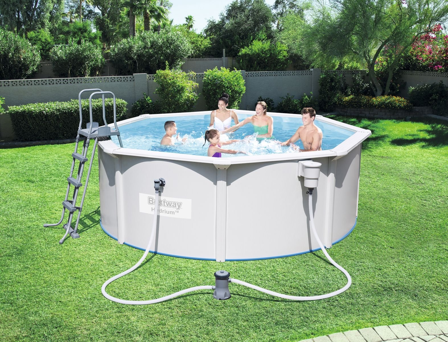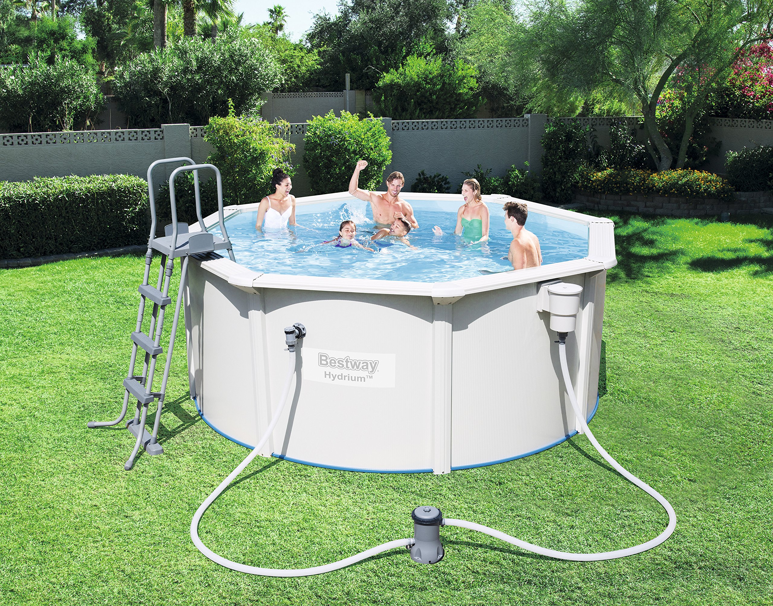 Robuster StahlwandPool mit hochwertiger PVC-Auskleidung, extrabreiter 16cm Stahlrahmen entlang des Beckenrandes