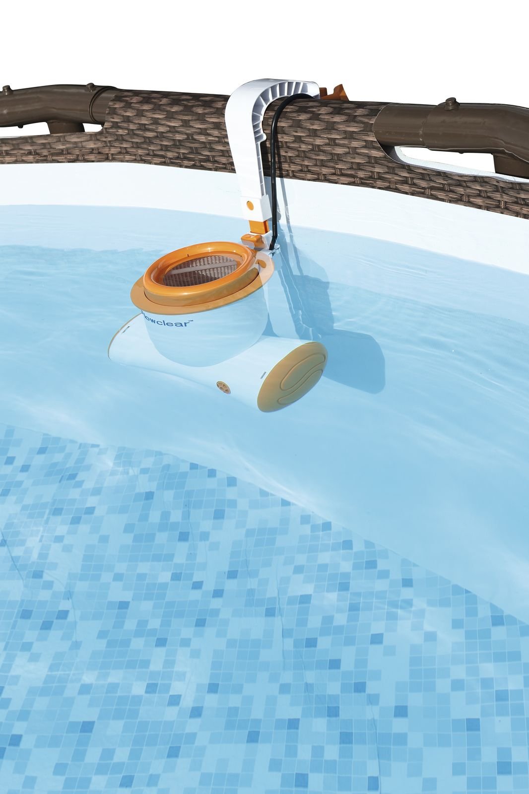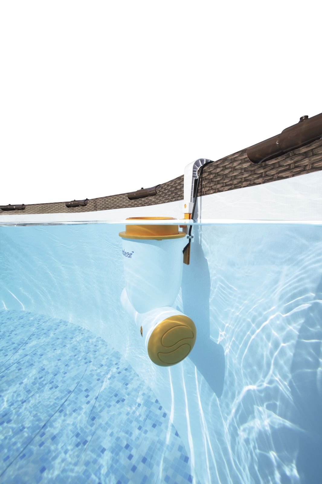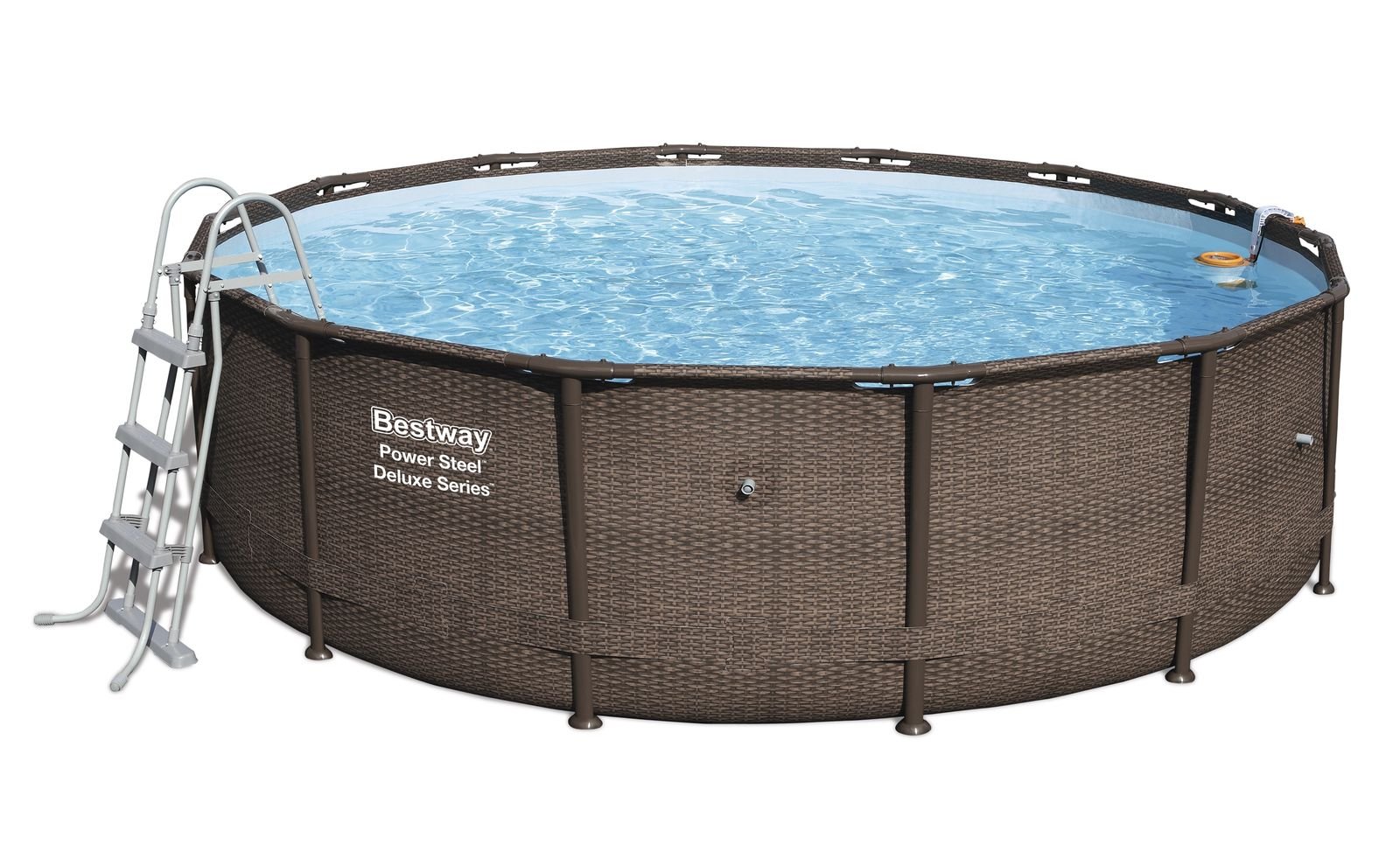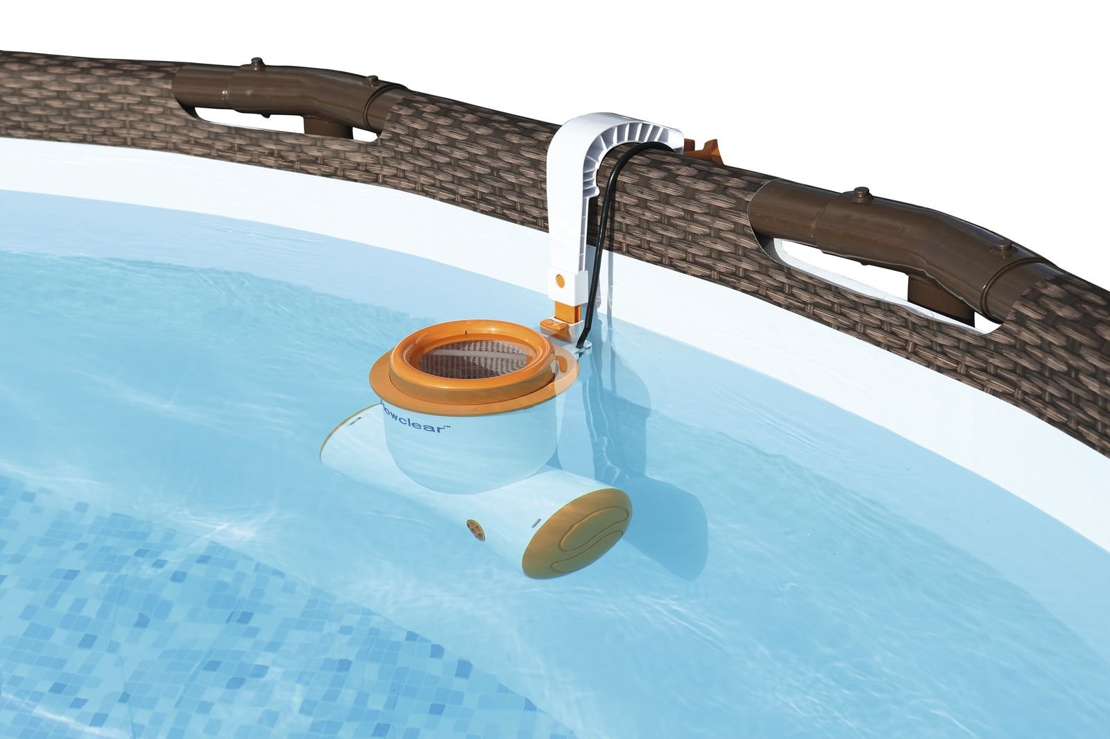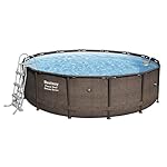 Gesamtinhalt: ein Pool, eine Flowclear Skimatic Filterpumpe, eine Sicherheitsleiter, eine Bodenplane, eine Abdeckplane