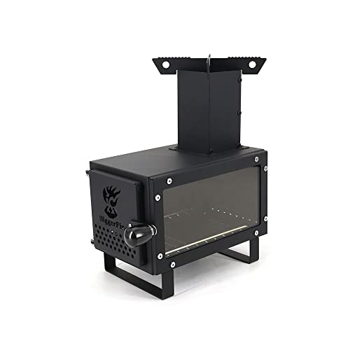 【Großes seitliches Glasfenster】 Welcher Campingkocher ist alle hochwertigem Eisenlegierung gefertigt. Die schwarze Pulverbeschichtung hat eine hohe Hitzebeständigkeit. Unsere Camping-Holzöfen sind mit Hilfe von hitzebeständigen Fenstern nebenher ausgestattet, um die Hitze des Weiteren die Brenndauer gut verträglich zu wahrnehmen. Dies Wasserglas des Zeltofens ist solange bis zu 700 °Kohlenstoff hitzebeständig.