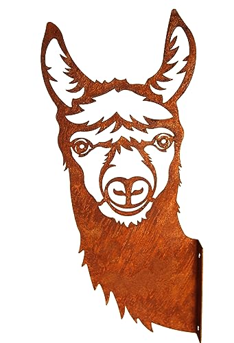 ALPAKAKOPF zum anschrauben, Dies LAMA schaut Solche allesamt Ihrer Gartenecke überrascht an, es kann über und über an einem zusammenhängender Graph, Gartenhaus, Pfeiler, Einfriedung oder Mauer angeschaubt werden. Edelrost Grill Gartendeko