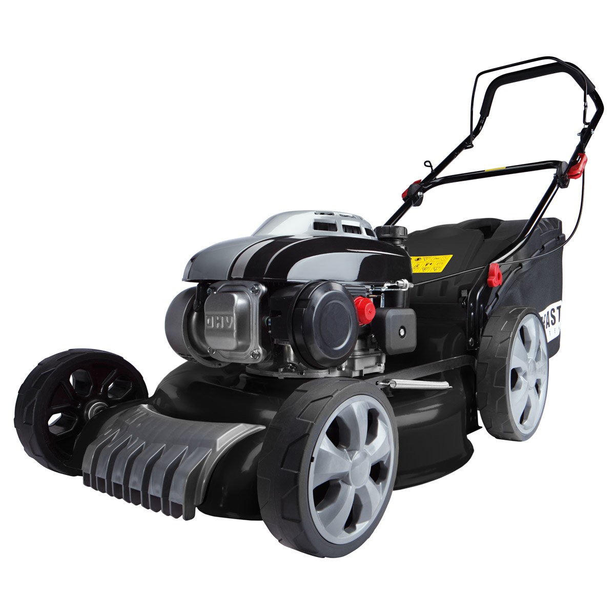 Dies Besondere: In der Preislage ungewohnt per 149 ccm Hubraum, 46cm Schnittbreite, eine 8-stufige zentrale Schnitthöhenverstellung, dem genialen Easy Clean Reinigungssystem, 60L Grasfangkorb per Füllstandsanzeige ferner einem überaus robusten Stahlblechgehäuse
