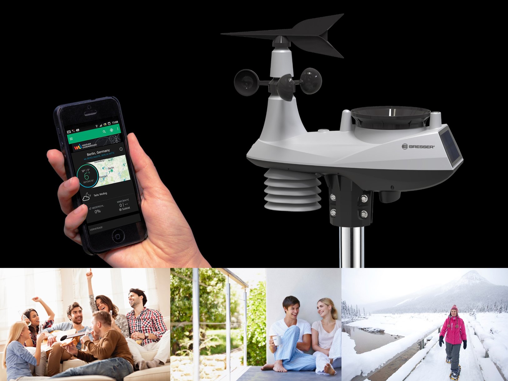 Es liefert unplanmäßig zu den Funktionen der Wetter Center 5in1 (Menge.-Nr.: 7002510) einen UV-Strahlungsmesser weiterhin W-LAN rechtseindeutige Relation.