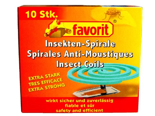 Die bekannten Anti-Mückenspiralen zur Widerstand der ungeliebten Flugmaschine. Werden mit dem beigelegten Standfüßchen aufgestellt oder im Spiralenhalter eingelegt (dieser ist als Zubehör unter Nummer 388688 erhältlich). Das Schluss der Spirale anzünden. Glimmt dann ca. 6 Stunden (unfrei vom Wind) und vertreibt bzw. tötet Mücken und andere Insekten. Wachsamkeit: ist vulgo für andere Kaltblüter, wie z.B. Fische, gallig. Wirkungskreis bei günstigen Bedingungen ca. 28 qm. Am effektivsten bei Windstille.