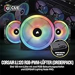 Lieferumfang: Corsair CO-9050072-WW LL120 RGB LED 120mm Leistungsstarker PWM Lüfter 3er-Pack mit Lighting Node und Hub schwarz