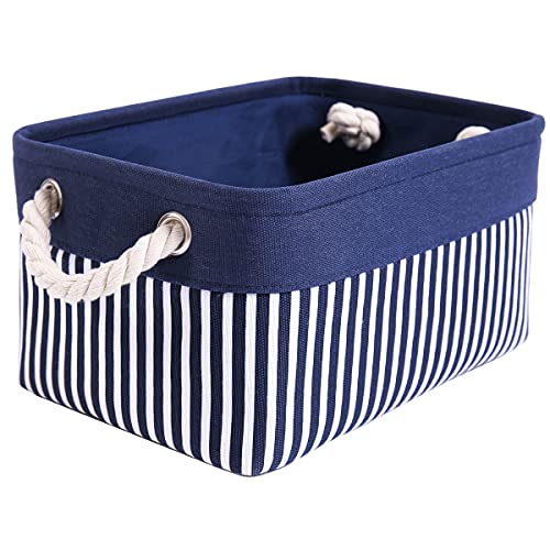 DanacI Faltbare Aufbewahrungsbox, Kleiner verdickter Stoff-Aufbewahrungskorb mit Griffen for Spielzeugregale (M, weiße Streifen)