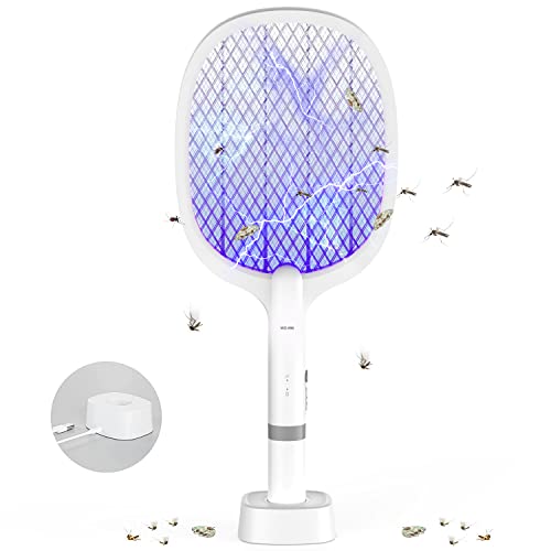 USB-Laden und große Netzoberfläche — Mit einem eingebauten 1200mAh Akku und einer Ladestation kann diese elektrische Fliegenklatsche bequem über USB aufgeladen werden. Die 22x16cm große Netzoberfläche, bestehend aus drei Schichten ineinandergreifender Gitter, fängt Mücken und andere fliegende Insekten effektiv ein.