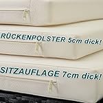 – Polstermaße: Kissen 7 cm wohlbeleibt, Rückenkissen 5 cm wohlbeleibt