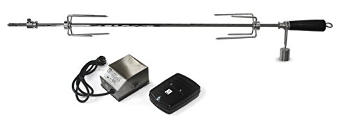 Der Grillspieß besteht die Gesamtheit einem Elektromotor auch einem batteriebetriebenen Automat sowie dem Drehspieß inklusive der Halterung auch zwei Hähnchenkrallen.