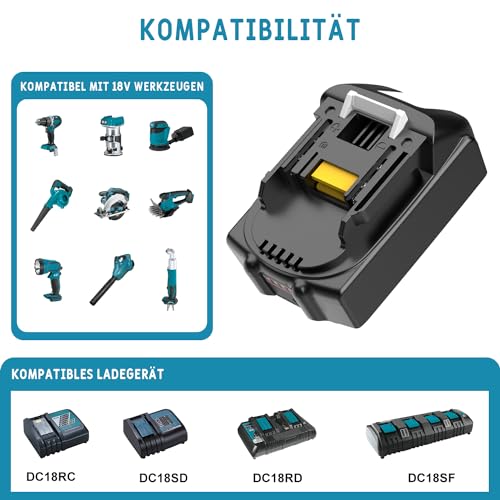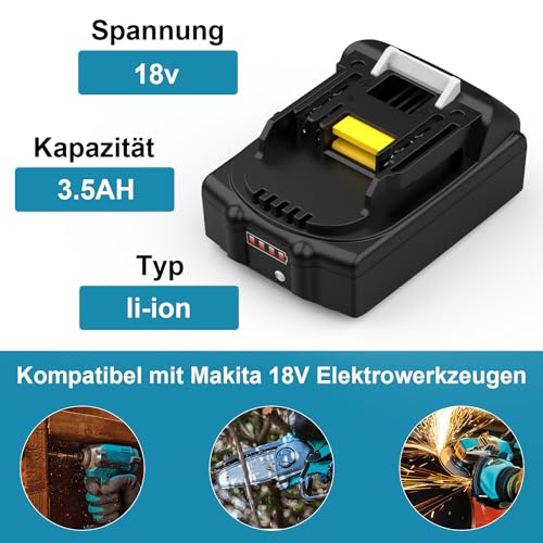 【Ersatzakku sondern Makita akku】Ereignis: 18V|Profi: 3500mAh|am Lebensabend: Lithium-Ion|Verbesserte akku kapazität aufwärts 3,5Ah, passend anhand dem Unverändert BL1830 18V wiederaufladbare Batterie.