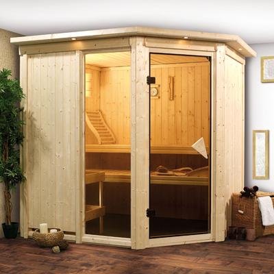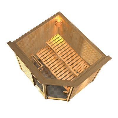 Karibu Elementsauna ganz 68 mm starken Wandelementen mit Dachkranz und inkl. 9-kW-Ofen mit externer S