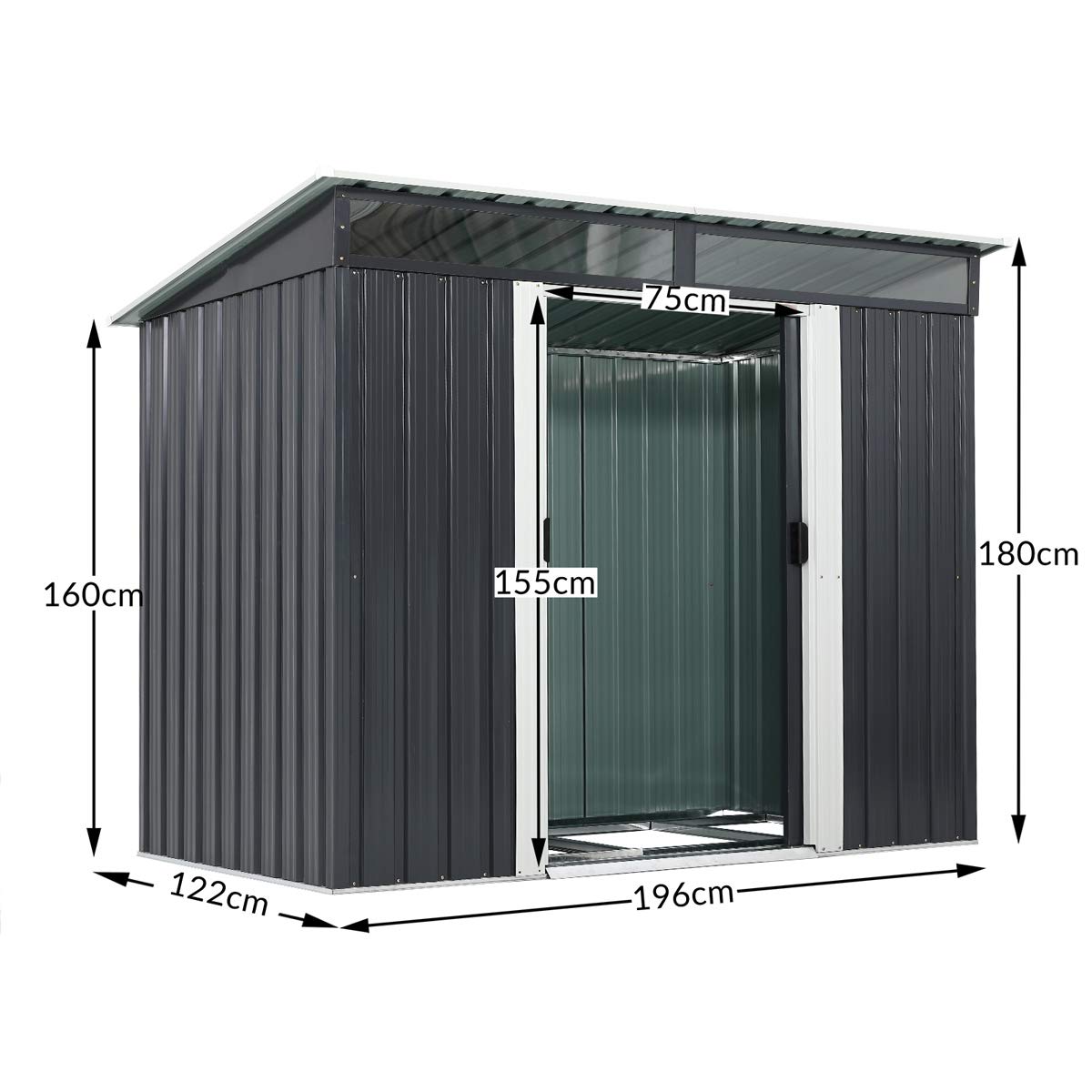 🛡️ Lieferumfang: Gerätehaus 3,4 m³, L 196 x B 122 x H 180cm | samt Ladefläche | Material: verzinktes Stahlblech | Färbemittel: anthrazit