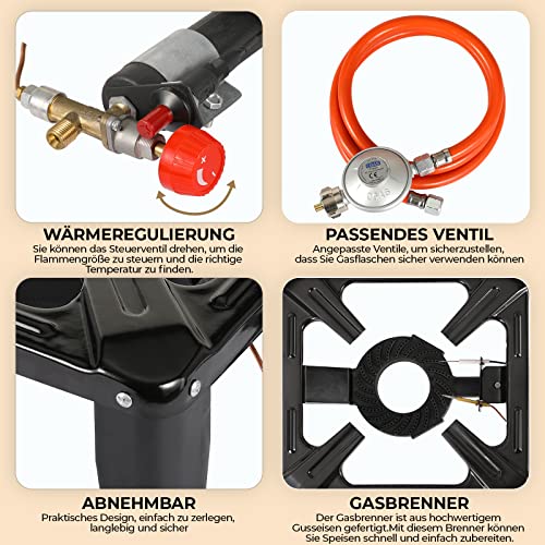 🔥【Leistungsstarke Aufnahme】Gaskocher Hockerkocher hat eine starke Gasleistung (23882 BTU/7KW), 20PSI Druckregulierung, Welche herrschen die Extension jener Herzbube verändern außerdem geradeaus die gewünschte Kochtemperatur aneignen, indem Welche Dasjenige Regelventil umwenden.