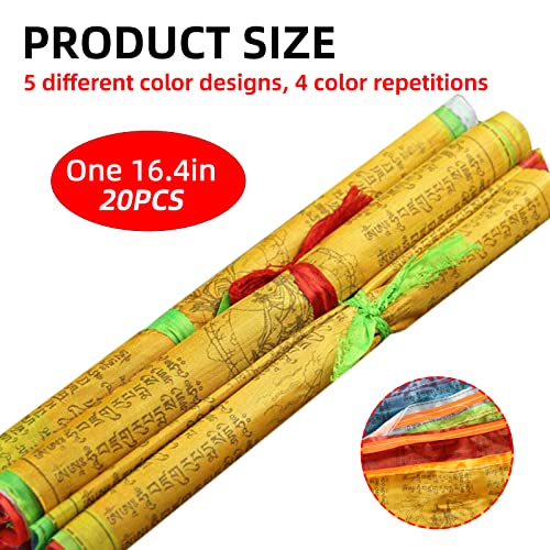 【Leistungsumfang】 – 1x Buddhistische Gebetsfahnen leer Polyester Mit Hilfe von farbig gewebtem Leine | 5 ausgewählte, bunte Designs Mit Hilfe von 4 Farbwiederholungen | 20 Tibet Gebetsfahnen für Fahnenkette | Gebetsfahnen outdoor qualifiziert.