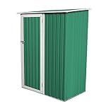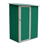 Maße: ca. 130 cm x 80 cm x 186 cm (BxTxH) Tür: ca. 170 cm x 66 cm (LxB) mit Schloss-Riegel – Pultldach – Farbe: Grün