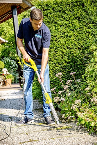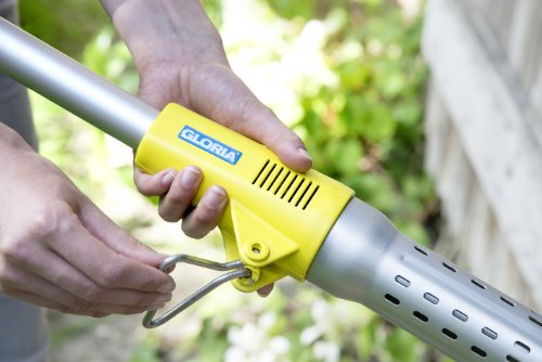 Das Maschine weinige Sekunden direkt über das Unkraut halten, die Kegeldüse schirmt den Hitzestrahl nach außen ab und aggregiert die heiße Luft direkt auf die Pflanze.
